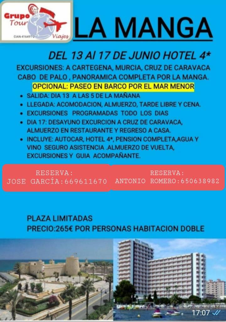 Viajes Viaje a la Manga Mar Menor (Murcia) del 13 al 17 de Junio 2021 Publicado por avvprimerodemayo el mayo 18, 2021 Comparte esto: Compartir en X (Se abre en una ventana nueva) X Comparte en Facebook (Se abre en una ventana nueva) Facebook Me gusta Cargando... Relacionado