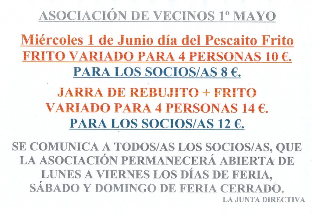 Noticias Cena Pescaito Feria de Alcalá 2022 Publicado por avvprimerodemayo el mayo 31, 2022 Comparte esto: Compartir en X (Se abre en una ventana nueva) X Comparte en Facebook (Se abre en una ventana nueva) Facebook Me gusta Cargando... Relacionado