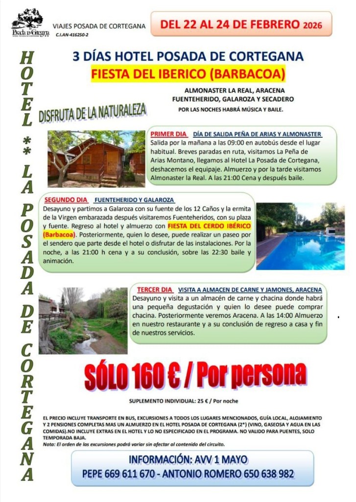 Viajes Viaje a Cortegana del 22 al 24 Febero 26 Publicado por avvprimerodemayo el noviembre 17, 2025 Comparte esto: Compartir en X (Se abre en una ventana nueva) X Comparte en Facebook (Se abre en una ventana nueva) Facebook Me gusta Cargando... Relacionado